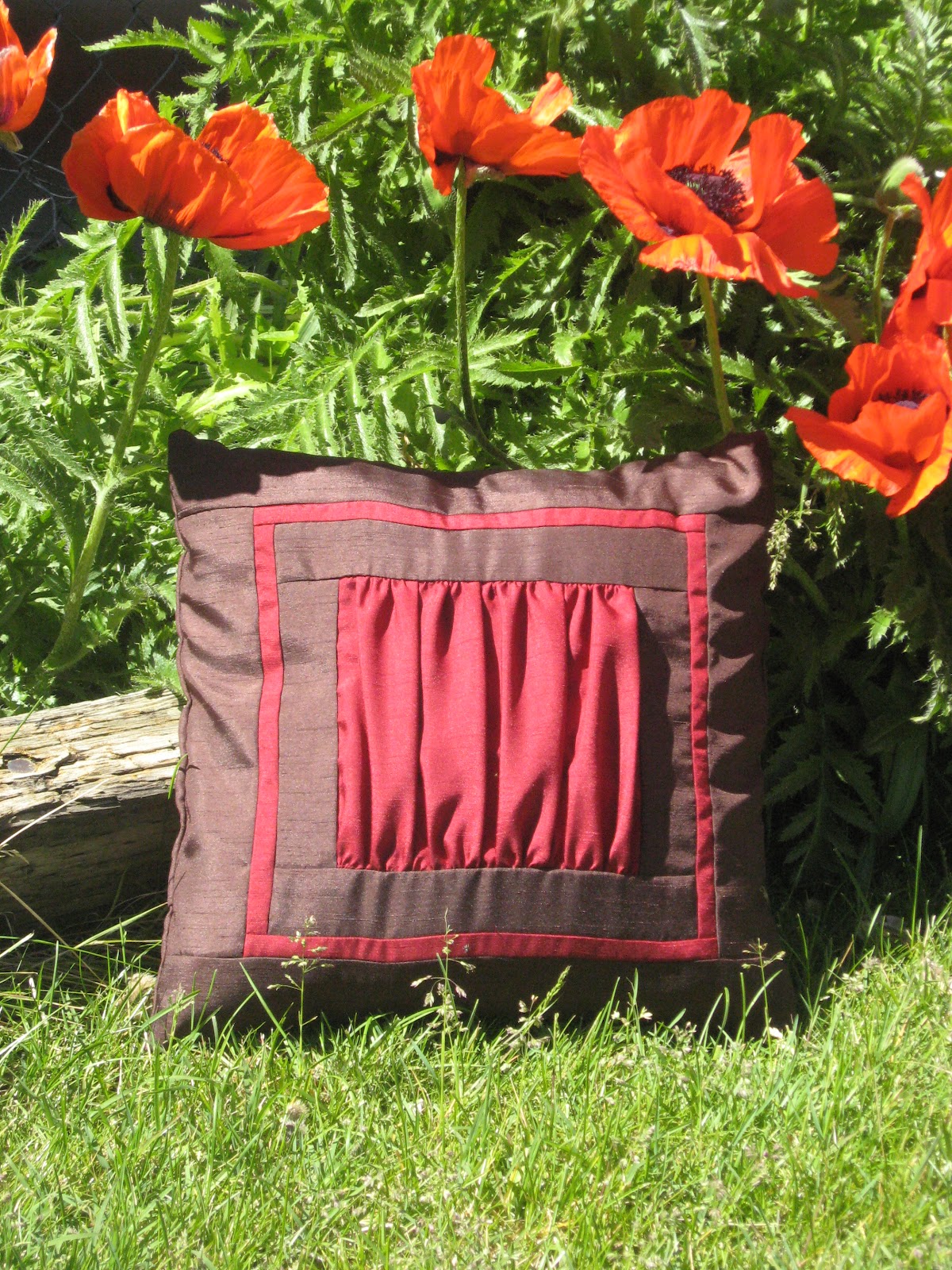 Weeks later I was looking at Diary of a Quilter at this post about the new book coming out, and it had the same exact picture of the same pillow! I hadn't even known it was in a book, but now that I think of it, anything pictured in a magazine is going to have the pattern available somewhere, or else it wouldn't be in the magazine. If you want to make a pillow like this, you can buy the book here. I made mine with satin-backed shantung and I LOVE it. Mine is 16", I don't know how big the one in the book is. I'm glad I've finally finished it.